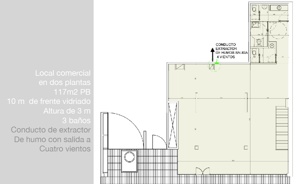 Planta Baja de 118,50m², son 10mts. de frente x 10mts. de fondo + batería de baños aparte